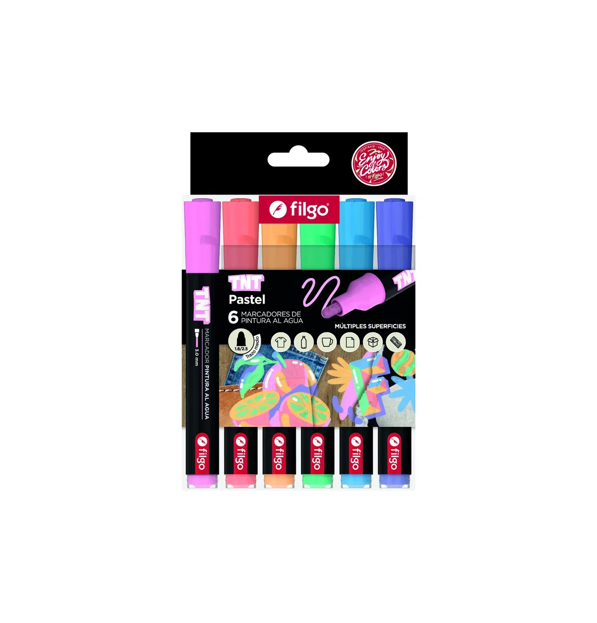 Sumérgete en la creatividad con estos marcadores de pintura al agua. Diseñados para múltiples superficies, ofrecen un trazo medio de1.9mm/3.0mm que garantiza precisión y elegancia. Con una selección de colores pasteles, son perfectos para proyectos artísticos y escolares.