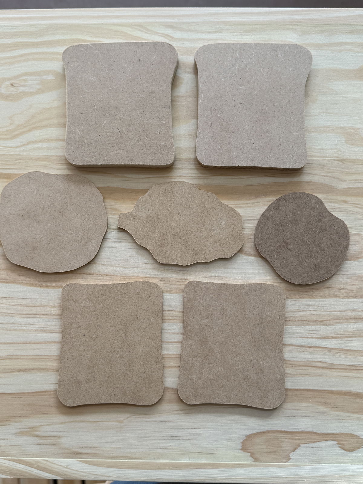 Incluye las siluetas de: 2 panes - 1 jamón - 1 queso - 1 lechuga - 1 tomate - 1 huevo frito
