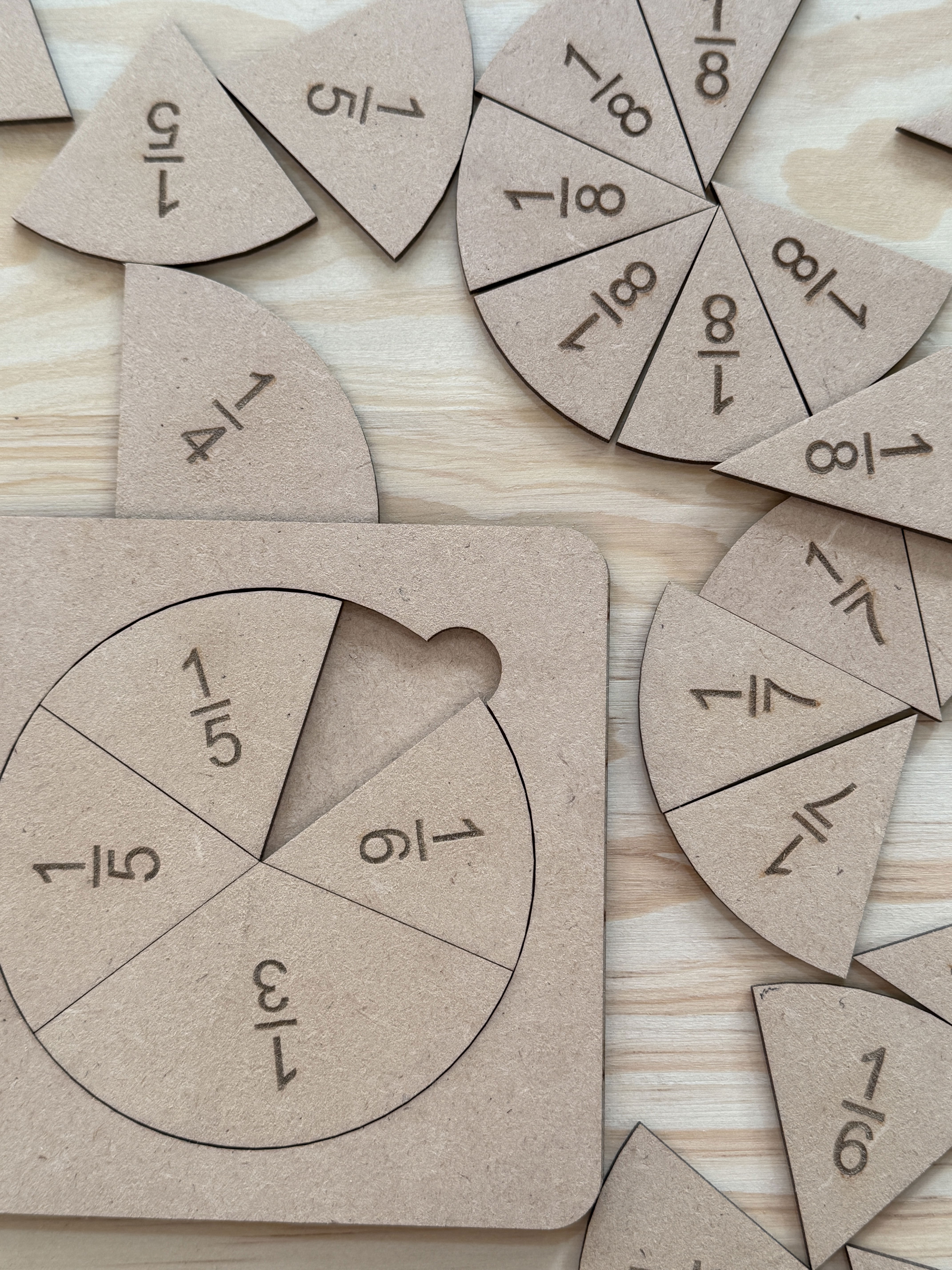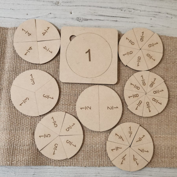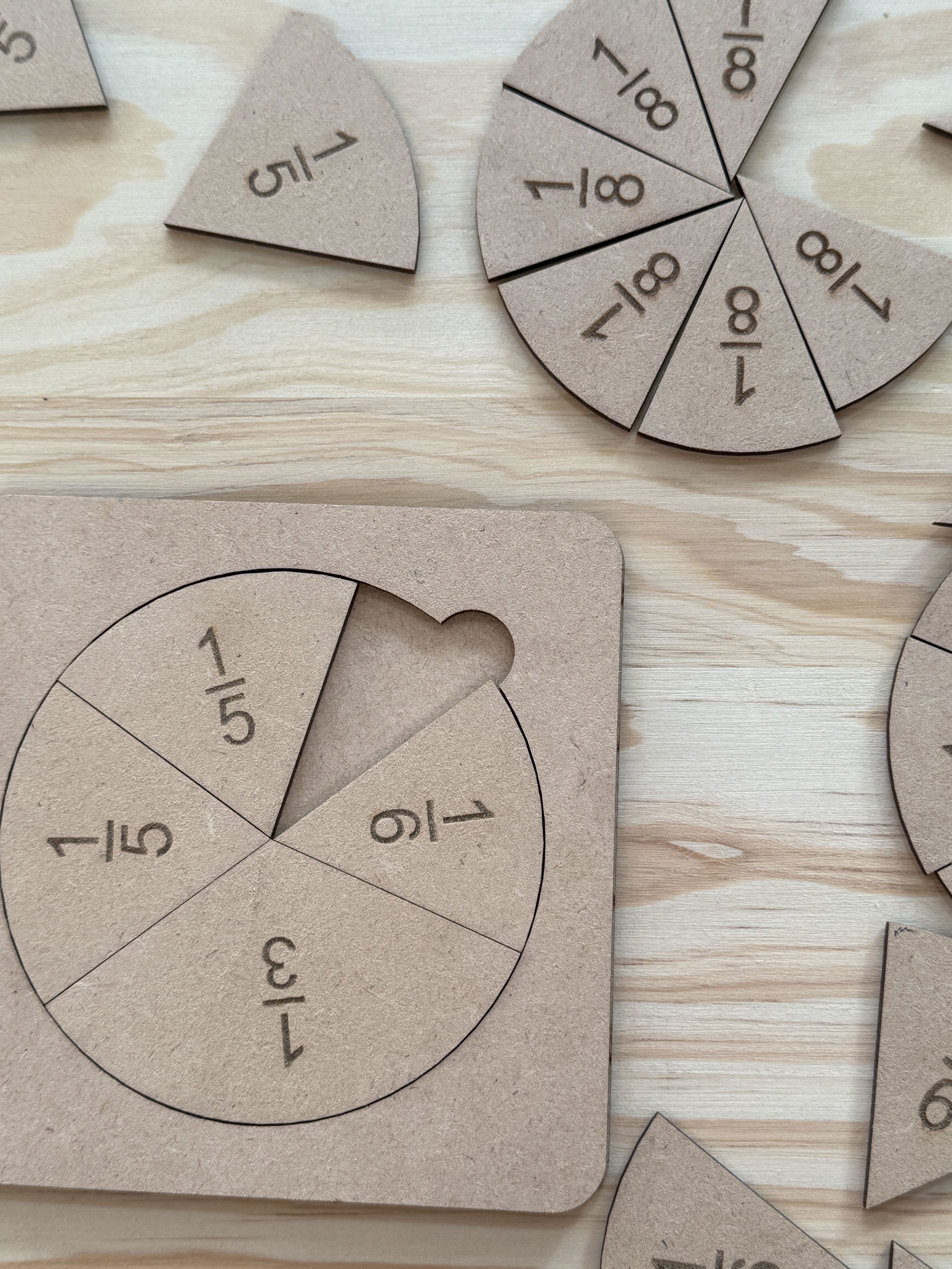 🧩 Incluye fichas de: 1 entero – 1/2 – 1/3 – 1/4 – 1/5 – 1/6 – 1/7 – 1/8