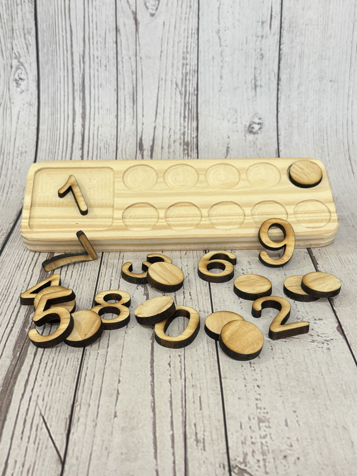 Medidas: La base mide 7,5cm x 23cm de largo. Las fichas son de 2,5cm de diametro. Los numeros miden 3,5cm de alto.