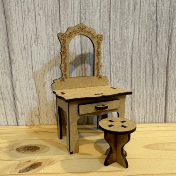Tocador LOL con banco de MDF 3mm con corte laser.