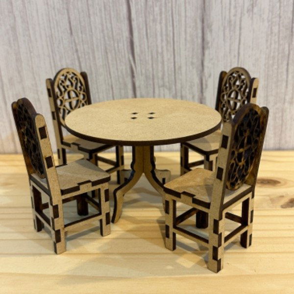 Mesa con sillas LOL de MDF 3mm con corte laser.