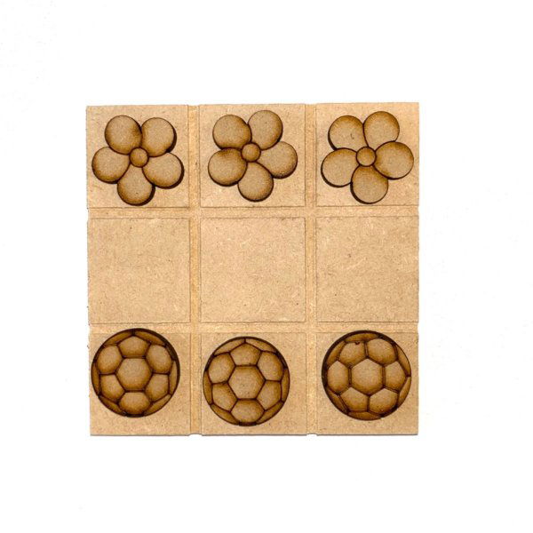Base de Fibrofacil 5,5mm ranurada - medida: 9,5x9,5cm. Fichas de corte laser de aproximadamente 2,5cm.