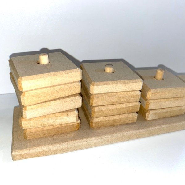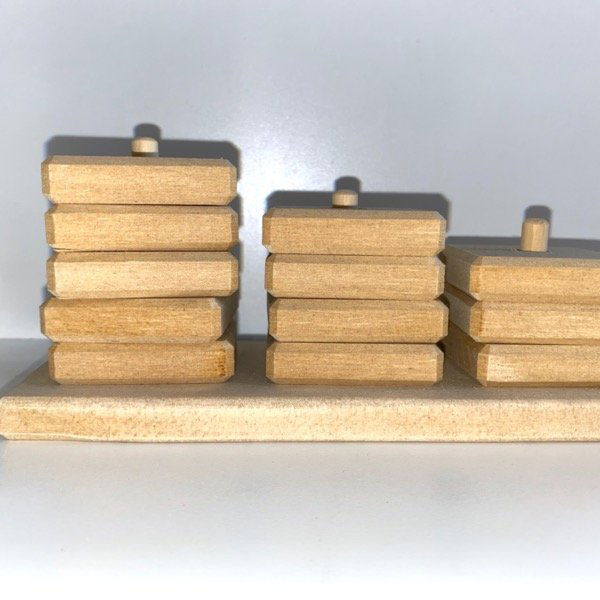 Juego orientado a desarrollar la motricidad fina, las habilidades de encastre y las cantidades.