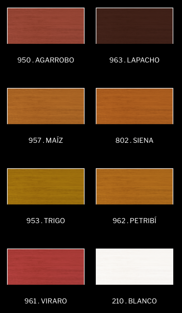 Barníz para realzar las vetas de la madera. Terminación satinadaSella, colorea y protege en una sola aplicación.Solubles en agua. NO TÓXICOPresentación y Rendimiento Envase de 375cc rinde aprox. 3.75m2