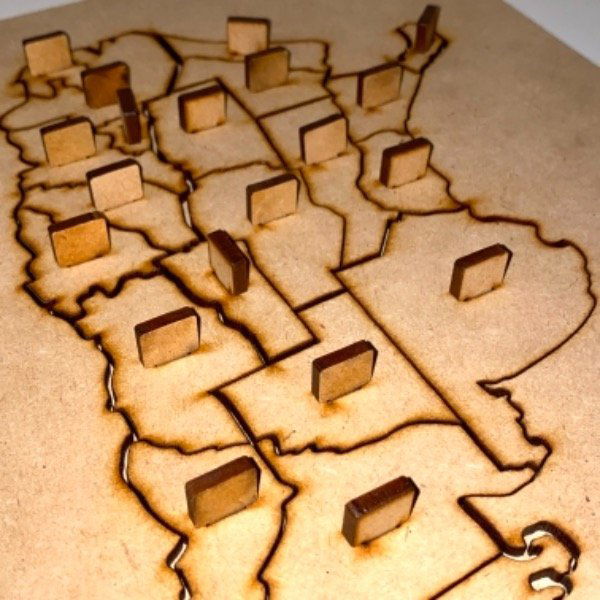 Mapa de Argentina con tirador. Ideal para fomentar el agarre pinza de los mas chicos. Estimula la motricidad fina.