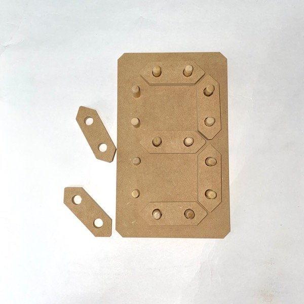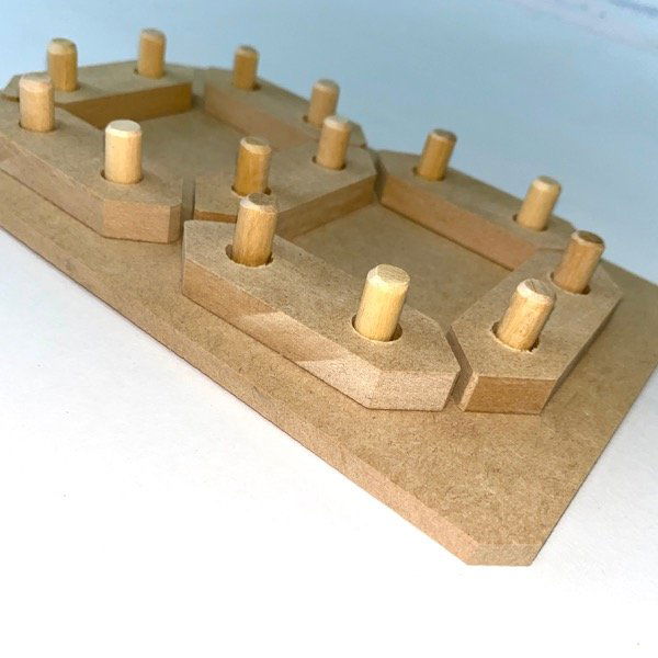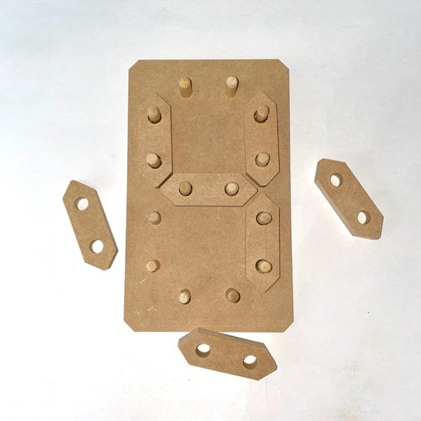 Medidas: Base de 12x20cm. Fichas de 7cm de largo.