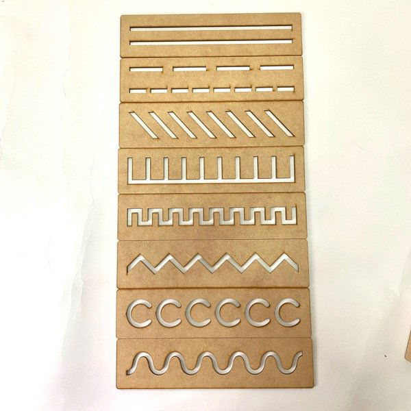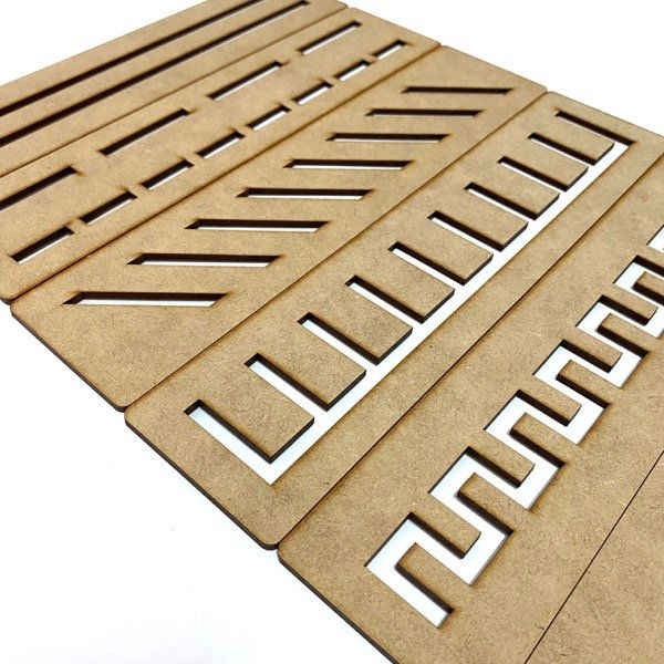 8 regletas de MDF de 3mm de espesor. Medida 7x28cm.