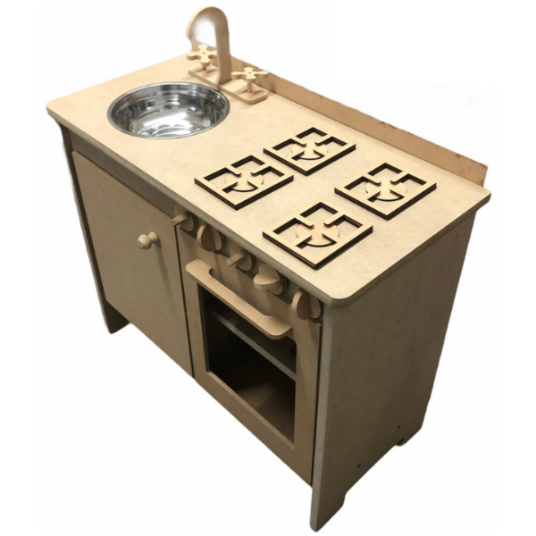 Cocina de MDF 18mm (puertas y perillas de 9mm de espesor). Incluye bowl metálico.