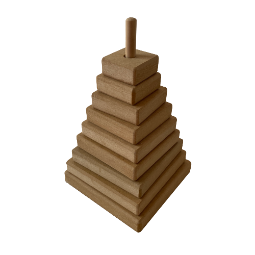 Torre de apilar con 8 piezas para encastrar en el eje principal. Este juguete favorece la motricidad fina, las habilidades de encastre y las seriaciones de tamaño, como los conceptos de mayor y menor.
