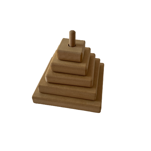 Medidas: Base de 12x12cm. Piezas de encastre: 4x4cm; 6x6cm; 8x8cm; y 10x10cm.