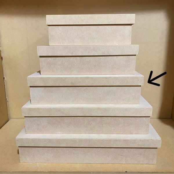 Caja estilo zapato de MDF 5,5mm con tapa de MDF 3mm.
