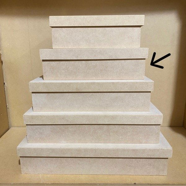 Caja estilo zapato de MDF 5,5mm con tapa de MDF 3mm.