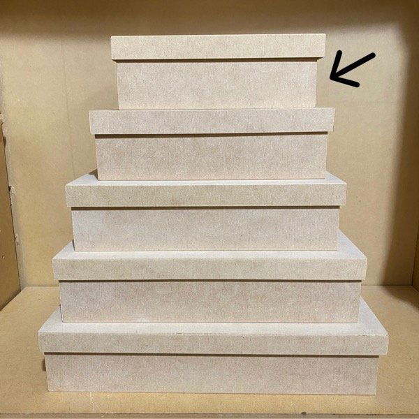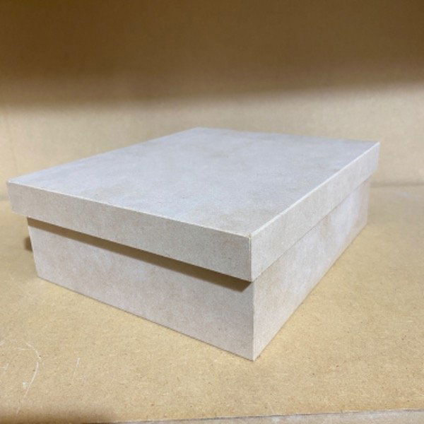 Caja estilo zapato de MDF 5,5mm con tapa de MDF 3mm.