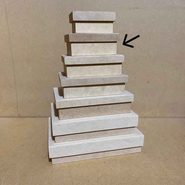 Caja estilo zapato de MDF 5,5mm con tapa de MDF 3mm.