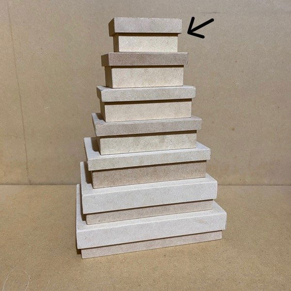 Caja estilo zapato de MDF 5,5mm con tapa de MDF 3mm.