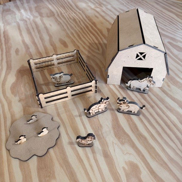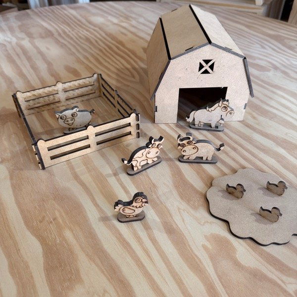 Granja de MDF + 5 animalitos