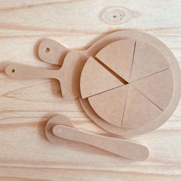 -Pizza cortada en 6 porciones: MDF 9mm diametro 18cm