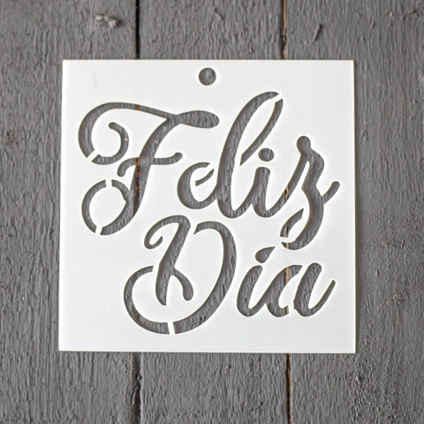 Stencil PI - BA5 10x10cm - Feliz Dia Cursiva