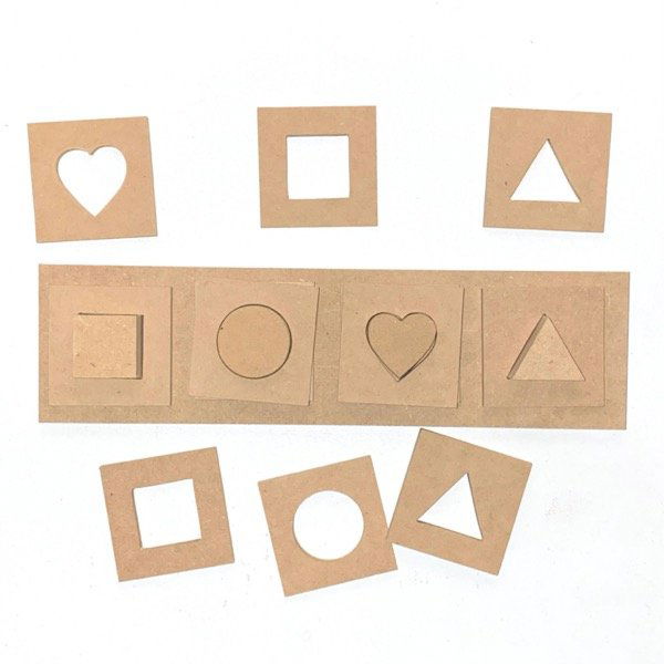 Contiene 1 base con 4 figuras y 12 piezas caladas para encastrar.