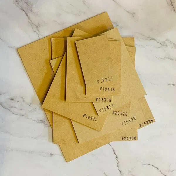Corte de MDF de espesor 3mm. La medida del corte es la que indica el titulo de la publicacion. (La foto es a modo ilustrativo).